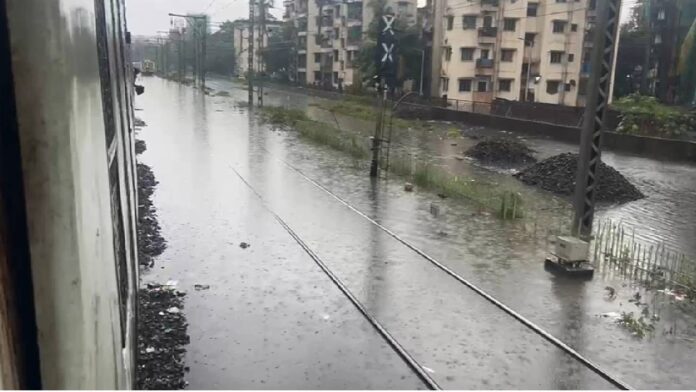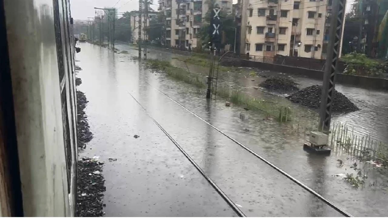 मुंबईतील कुर्ला आणि विद्याविहार दरम्यानच्या रेल्वे ट्रॅकवर पाणी साचले आहे. काल रात्रीपासून सुरू असलेल्या मुसळधार पावसामुळे ट्रॅक पूर्णपणे पाण्याखाली गेले आहेत. रेल्वे प्रशासनाने पाणी काढण्यासाठी पंप लावले असले तरी पाण्याचा निचरा होत नव्हता. यामुळे लोकल ट्रेनची वाहतूक धीम्या गतीने सुरू आहे. फास्ट ट्रॅकवरील गाड्या स्लो ट्रॅकवर वळवण्यात आल्या आहेत. मुंबईकरांना सकाळी कामावर जाताना याचा त्रास सहन करावा लागत आहे. बृहन्मुंबई महानगरपालिकेने (BMC) आज शहरासाठी रेड अलर्ट जारी केला आहे. मध्यरात्रीपासून मुसळधार पाऊस पडतो आहे. त्यामुळे येथील रेल्वे ट्रॅक पूर्णपणे पाण्याखाली आलेला आहे. परिणामी रेल्वे वाहतुकीवर परिणाम झाल्याने प्रवाशांना अडचणी येत आहेत.