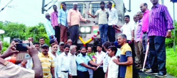 राजापूर : प्रदीर्घ काळ केलेल्या मागणी नंतर कोकण रेल्वे प्रशासनाने अखेर नेत्रावती एक्सप्रेसला राजापूर रोड स्थानकात थांबा दिल्यानंतर १५ ऑगस्ट या स्वातंत्रदिनी राजापूर स्थानकात थांबलेल्या नेत्रावती एक्स्प्रेसचे जल्लोषात स्वागत करण्यात आले. त्यावेळी उपस्थित नागरिकांनी नेत्रावती एक्सप्रेच्या मोटारमनचा सत्कार केला.