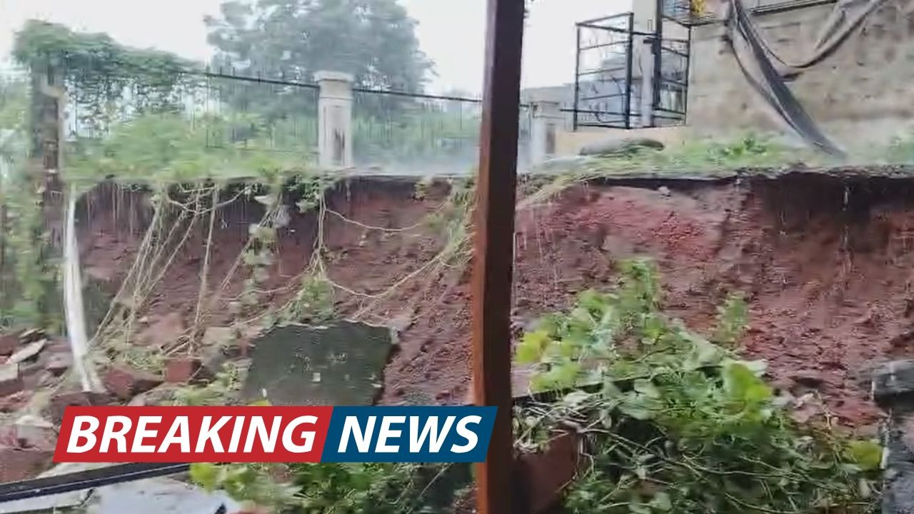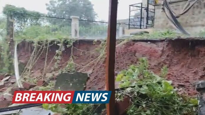रत्नागिरी शहरात सकाळपासून सुरू असलेल्या मुसळधार पावसाने अखेर आपले रौद्र रूप दाखवले आहे. शहरातील कोकण नगर येथील नायाब रेसिडेन्सीजवळ आज सकाळी साडेसातच्या सुमारास एक संरक्षक भिंत कोसळल्याची मोठी घटना घडली. या दुर्घटनेत भिंतीखाली उभ्या असलेल्या तीन कारचे मोठे नुकसान झाले आहे. सुदैवाने कोणतीही जीवितहानी झाली नसल्याने सर्वांनी सुटकेचा निःश्वास सोडला आहे.