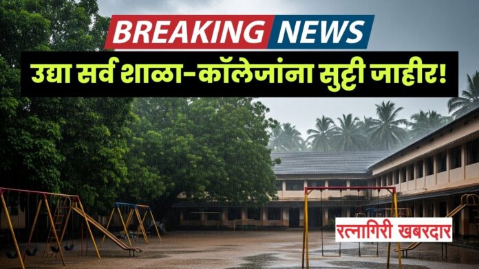 रत्नागिरी, १८ ऑगस्ट: भारतीय हवामान विभागाने रत्नागिरी जिल्ह्यासाठी उद्या, दिनांक १९ ऑगस्ट २०२५ रोजी ‘ऑरेंज अलर्ट’ जारी केल्याच्या पार्श्वभूमीवर जिल्हा प्रशासनाने मोठा निर्णय घेतला आहे. जिल्ह्यातील पूरस्थितीची शक्यता आणि अतिमुसळधार पावसाचा इशारा लक्षात घेता, विद्यार्थ्यांच्या सुरक्षेसाठी जिल्ह्यातील सर्व शाळा आणि महाविद्यालयांना उद्या सुट्टी जाहीर करण्यात आली आहे.