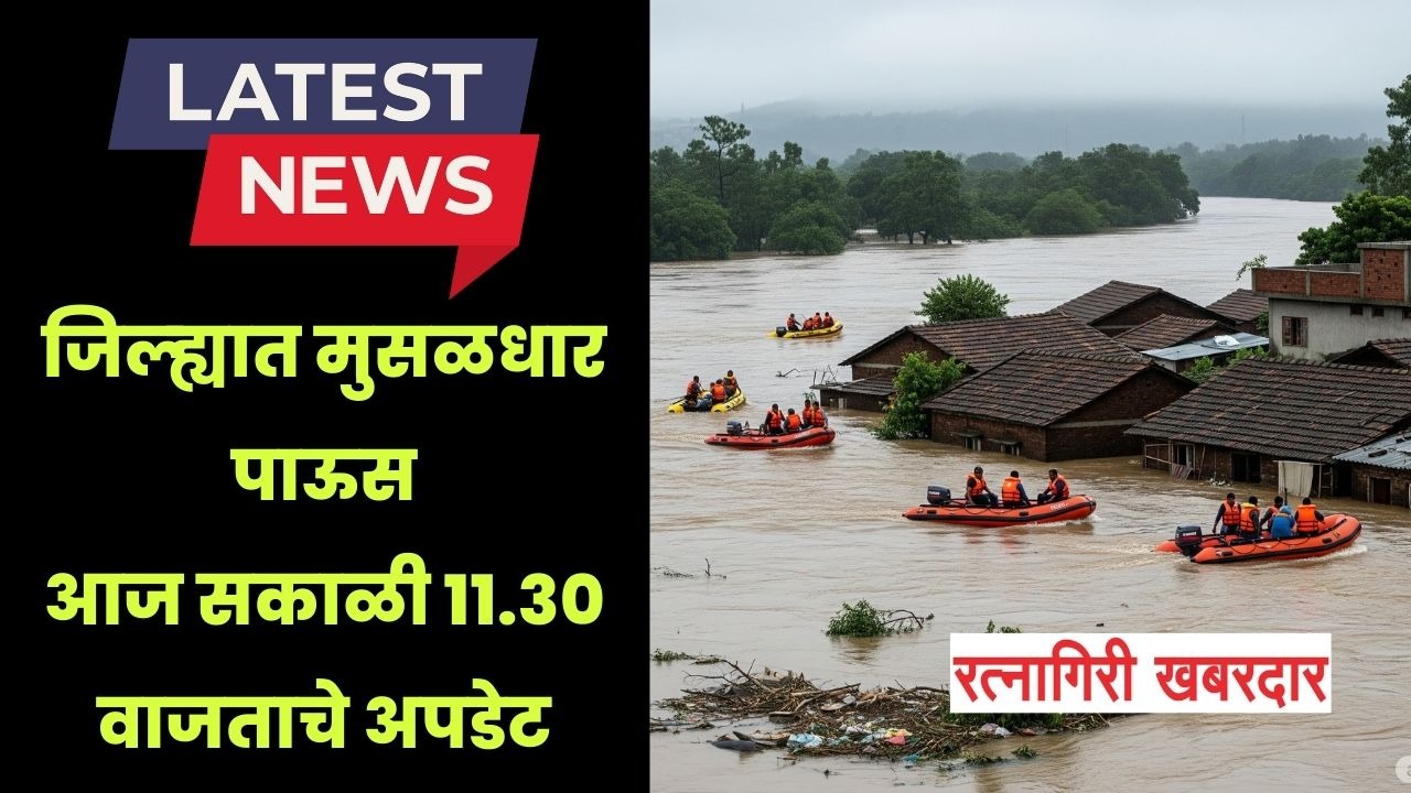 रत्नागिरी जिल्ह्यात पावसाचा जोर कायम असून, पूरस्थिती आता अधिकच गंभीर बनली आहे. पाटबंधारे विभागाच्या पूरनियंत्रण कक्षाने आज (मंगळवार) सकाळी ११:३० वाजता जाहीर केलेल्या ताज्या अहवालानुसार, खेड येथील जगबुडी नदीने आपली धोक्याची पातळी ओलांडली आहे. यामुळे खेड शहरावर पुराचा मोठा धोका निर्माण झाला असून, प्रशासनाने अतिदक्षतेचा इशारा जारी केला आहे.