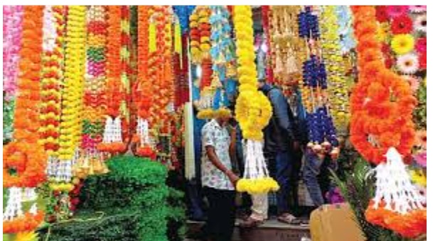 १०० ते १५० रूपयापर्यंत किमती आहे. तसेच झेंडू, गुलाब, मोगरा फुलांच्या माळा उपलब्ध झाल्या आहेत. गणपतीच्या मागे लावण्यात येणारी पानांची जाळी त्याचबरोबर व सजावटीचे साहित्य विक्रीस उपलब्ध असून, नागरिकांकडून मोठ्या प्रमाणात खरेदी करण्यात येत आहे.