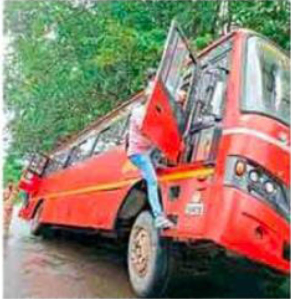 बसमध्ये ५०हून अधिक प्रवासी होते. पंधरा दिवसांपूर्वी याच परिसरात कातुर्डी गाडीने विद्युतखांबाला धडक दिल्यामुळे अपघात झाला होता. आठ दिवसापूर्वी संगमेश्वरहून कातुर्डीकडे जाणाऱ्या एसटी बसला कारभाटलेनजीक समोरून येणाऱ्या टेम्पोने धडक दिली होती. त्यात टेम्पोचालक गंभीर जखमी झाला होता तर दोन्ही वाहनांचे मोठे नुकसान झाले. शास्त्रीपूल ते नायरी, निवळी, कातुर्डी हा मार्ग अरूंद असून वळणावळणांचा आहे. त्यामुळे समोरून येणाऱ्या वाहनांचा अंदाज घेता येत नाही.