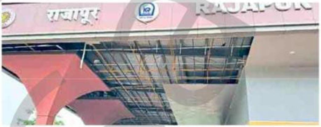 राजापूर : राज्याचे तत्कालीन सार्वजनिक बांधकाममंत्री रवींद्र चव्हाण यांच्या संकल्पनेतून साडेचार कोटी रुपये खर्च करून तालुक्यातील सोल्ये येथील राजापूर रोड रेल्वेस्थानकाचे सुशोभीकरणाचे काम करण्यात आले; मात्र सुशोभीकरणाच्या कामाला एक वर्ष पूर्ण होण्याअगोदरच छताचा भाग कोसळल्याने या कामाच्या दर्जाबाबत साशंकता निर्माण झाली आहे. त्यामुळे प्रवाशांसह स्थानिक ग्रामस्थांतून या कामाबाबत तीव्र नाराजी व्यक्त केली जात आहे.