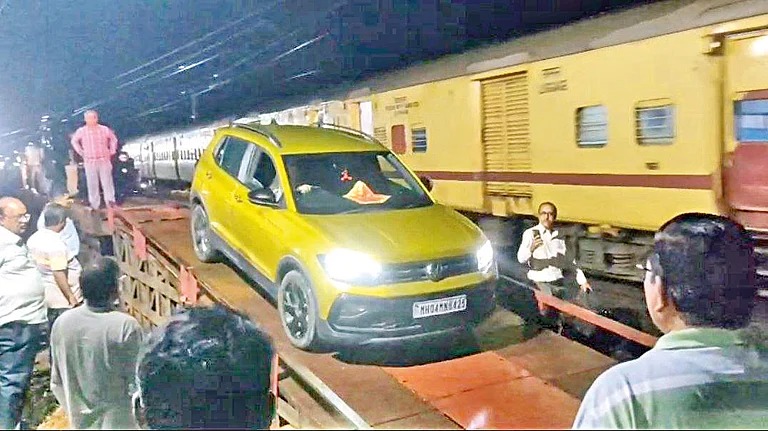 रत्नागिरी : देशातील पहिली रो-रो कार सेवा कोकण रेल्वेवरून चालवण्यात आली. त्यामुळे भारतीय रेल्वेच्या इतिहासात कोकण रेल्वेचे नाव सुवर्ण अक्षरात कोरले गेले आहे. पहिल्या रो-रो कार सेवेत एकूण पाच चारचाकी वाहने आणि १९ प्रवाशांचा प्रवास सुरू झाला.