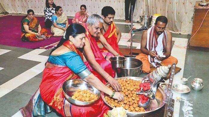 गणपतीपुळे ः रत्नागिरी तालुक्यातील प्रसिद्ध तीर्थक्षेत्र असलेल्या गणपतीपुळे येथील स्वयंभू श्रींच्या मंदिरात प्रतिवर्षाप्रमाणे भाद्रपदी गणेशोत्सवाला सुरवात झाली आहे. या उत्सवाच्या द्वितीय दिनी श्रींच्या चरणी सहस्त्र मोदक समर्पण विधी सोमवारी मोठ्या भक्तीभावात झाला.