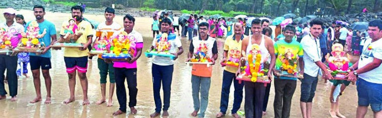 फुलांची उधळण करीत, ढोल-ताशांच्या गजरात श्रीगणेशांचे मोठ्या उत्साहात विसर्जन करण्यात आले. गणेश विसर्जनासाठी रत्नागिरीतील मांडवी समुद्र किनारी गणेशभक्तांनी मोठी गर्दी केली होती. अनेकांनी खासगी वाहनांमधून आपल्या लाडक्या गणरायाचे विसर्जन केले. मांडवी व भाट्ये समुद्रकिनाऱ्यांसह तालुक्यातील ग्रामीण भागांमध्येही पोलिस यंत्रणेने विशेष दक्षता घेत बंदोबस्त ठेवला होता.
