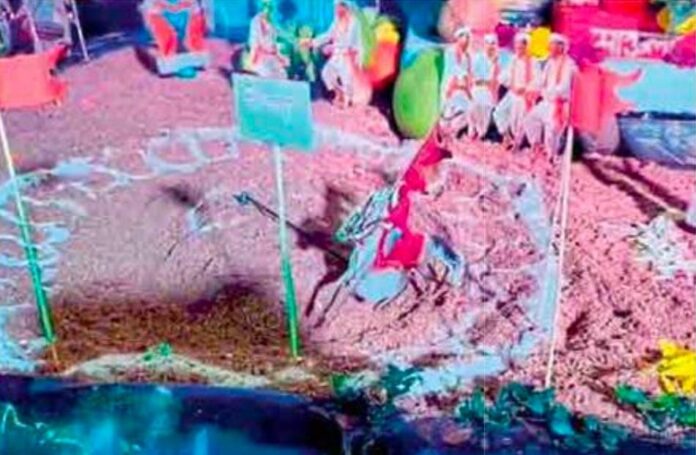 हरेश गोरूले यांच्यासह गावातील पांगले कुटुंबीयांनी या देखाव्याची निर्मिती केली असून, तो संपूर्ण परिसरात चर्चेचा विषय ठरला आहे.