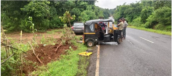 त्याच्यावर लांजा ग्रामीण रुग्णालयात उपचार करण्यात आले. या घटनेत रिक्षाच्या दर्शनी भागाचे मोठे नुकसान झाले आहे. प्रकरणी अधिक तपास पोलीस निरीक्षक निळकंठ बगळे यांच्या मार्गदर्शनाखाली महिला पोलीस हेड कॉन्स्टेबल उर्मिला शेडे या करीत आहेत.