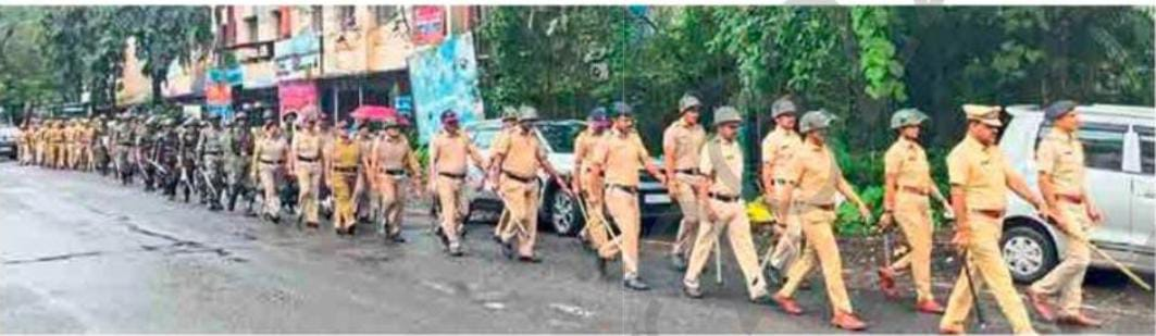 चिपळूण : गणेशोत्सव व ईद-ए-मिलाद सणाच्या अनुषंगाने चिपळूण पोलिस ठाणे येथे दंगा काबू योजना घेण्यात आली. तसेच शहरात रुट मार्च घेण्यात आला. या वेळी पोलिस निरीक्षक फुलचंद मेंगडे उपस्थित होते. शहरात कायदा व सुव्यवस्था अबाधित राहावी तसेच नागरिकांमध्ये सुरक्षिततेची भावना दृढ व्हावी, या उद्देशाने हे दोन्ही उपक्रम घेण्यात आले.