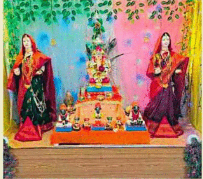 सावर्डे : ज्येष्ठागौरींना आवाहनची थोडी वेगळी अनोखी परंपरा जपत चिपळूण तालुक्यातील डेरवण येथे राहणाऱ्या गिरीश दत्तात्रय गुरप यांच्या घरी गणपतीच्या दोन्ही बाजूला गौराईची स्थापना करण्यात आलो. गिरीश यांचे आजोबा जनार्दन गुरप यांनी ८६ वर्षांपूर्वी ही प्रथा परंपरा सुरू केली. त्याचे आजही पालन केले जाते.