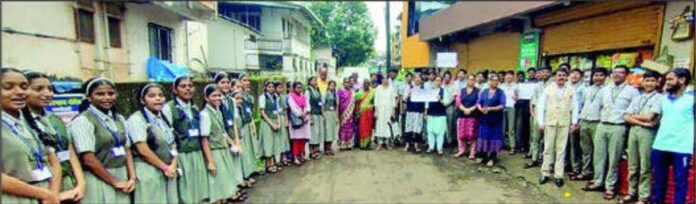 खेड : रोटरी इंग्लिश मीडिअम स्कूल खेडतर्फे भरणे बाईतवाडी परिसरामध्ये मतदान जनजागृती फेरीचे आयोजन करण्यात आले. सकाळी १०.३० वाजता मतदान जनजागृती रॅलीला सुरुवात झाली. यामध्ये रोटरी स्कूलमधील इ. ९ वीतील विद्यार्थी सहभागी झाले होते.