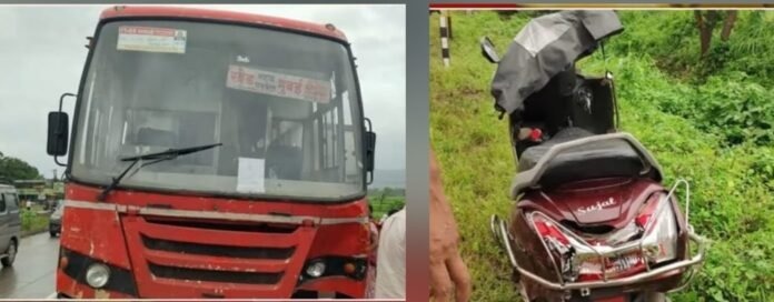 सोमवार दि.१ सप्टेंबर रोजी खेड-महाड-पनवेल- मुंबई ही एसटी महामंडळाची बस प्रवासी घेऊन मुंबईकडे भरधाव वेगाने जात होती. एसटी चालकाने रस्त्याच्या परिस्थितीकडे दुर्लक्ष करून मूठवली गावाच्या हद्दीत हॉटेल नम्रता गार्डन समोर (एसबी क्र. एम. एच.२० बी.१९६०) या एसटीने खांब बाजूकडे जाणाऱ्या स्कूटी (क्र. एमएच ०६ सीएच ४६६४) या स्कूटीला पाठीमागून जोरदार धडक दिल्याने मोठा अपघात झाला. या अपघातात स्कुटीवरून प्रवास करणारी युवती देवयानी किशोर गोळे वय वर्षे अंदाजे (वय १९ वर्षे) हिचा जागीच मृत्यू झाला. तर तिचा भाऊ सुजल किशोर गोळे (वय १६ वर्षे) हा गंभीर जखमी झाला आहे. त्यामुळे सर्वत्र एकच संतापाची लाट उसळली आहे. देवयानी मामाकडे गौरी सणासाठी जात होती पनवेल सीकेटी येथील कॉलेजमध्ये बीएमएस चे शिक्षण घेत होती.