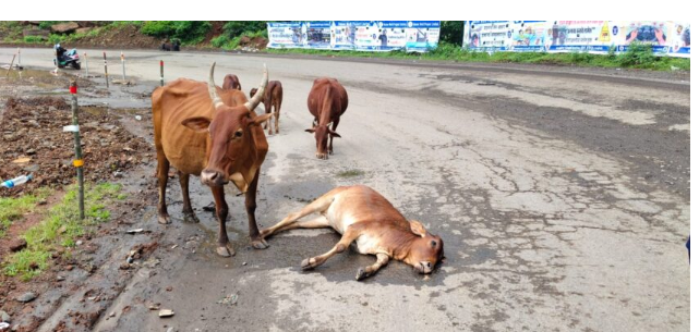 महामार्गावरील मोकाट जनावरांचा प्रश्न गंभीर