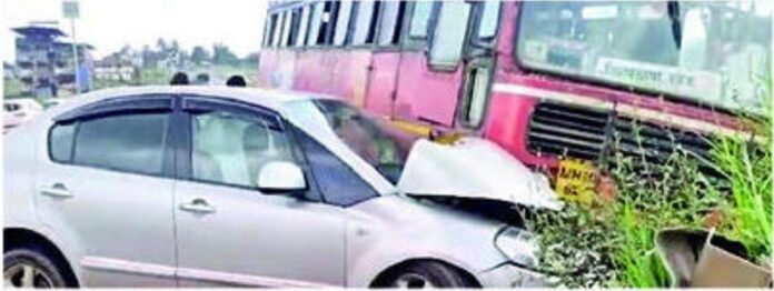 खेड : मुंबई – गोवा राष्ट्रीय महामार्गावर रविवारी दि. २० रोजी लोटे औद्योगिक वसाहत परिसरात आवाशी ते सीईटीपी दरम्यानचा नाल्यावरील छोट्या पुलावर कार तसेच एस. टी. बस यांची धडक झाली. अपघात दोन्ही वाहनांचे नुकसान झाले असले तरी कोणीही जखमी झालेले नाही.