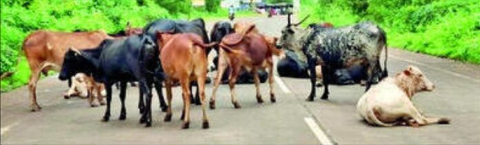 गुहागर : शृंगारतळी गुहागर मार्गावरील पाटपन्हाळे येथील इंग्लिश मीडियम स्कूलच्या समोर अलिकडे मोकाट गुरांनी ठिय्या मांडलेला दिसून येत आहे. त्यामुळे वाहनचालकांना याचा त्रास होत आहे. मोकाट गुरांच्या रस्त्यावरील वावराने या ठिकाणी अपघाताची भीती व्यक्त होत आहे.