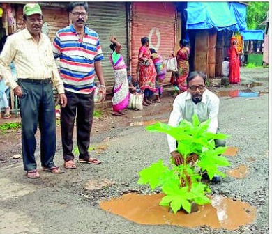 या खड्ड्यांमुळे अनेकवेळा अपघातही झाले आहेत. येथील ग्रामस्थांनी रस्त्यामध्ये पडलेल्या खड्यांमध्ये वृक्षारोपण करून संताप व्यक्त केला. एसटी स्टैंड ते गुहागर नाका या रस्त्यात खड्डे पडले आहेत. गुहागर बाजारपेठ ते पोलिस स्टेशन व वरचापाट बागेपर्यंत मोठ्या प्रमाणावर खड्डे पडले आहेत. हे खड्डे बुजविण्याचा केविलवाणा प्रयत्न सार्वजनिक बांधकाम विभागाने केला. खड्डे बुजवण्यासाठी जांभा दगडाचा वापर केला जातो. पाऊस पडल्यावर पुन्हा खड्डे व ऊन पडल्यावर धुळीचे साम्राज्य पसरते. त्यामुळे शहरातील रस्त्यांची दुरुस्ती करावी, अशी मागणी होत आहे.