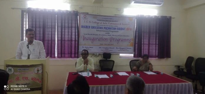 महाविद्यालयाच्या आय.क्यू.ए.सी.चे समन्वयक प्रा. डॉ. ए.एम. शेख यांनी हाययर-एज्युकेशन प्रमोशन ब्रिज उपक्रमाची सविस्तर माहिती दिली. त्यांनी सांगितले की, या उपक्रमांतर्गत आय.सी.एस. महाविद्यालयातील तज्ज्ञ प्राध्यापक वर्षभर कनिष्ठ महाविद्यालयांमध्ये जाऊन विद्यार्थ्यांना विविध विषयांबाबत मार्गदर्शन करणार आहेत. तसेच नवीन शैक्षणिक धोरणानुसार शिक्षण क्षेत्रात होत असलेल्या बदलांविषयी माहिती देऊन विद्यार्थ्यांमध्ये उच्च शिक्षणाची जागरूकता निर्माण करणार आहेत. विद्यार्थ्यांचा उच्च शिक्षणाकडे कल वाढविणे हा या उपक्रमाचा मुख्य हेतू असल्याचे त्यांनी नमूद केले.