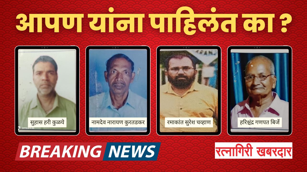 रत्नागिरी (प्रतिनिधी): रत्नागिरी जिल्ह्यातील पूर्णगड सागरी पोलीस ठाण्याच्या हद्दीतून गेल्या काही वर्षांत चार व्यक्ती बेपत्ता झाल्या आहेत. या व्यक्तींचा शोध घेण्यासाठी पोलिसांनी त्यांच्या छायाचित्रांसह माहिती जाहीर केली असून, नागरिकांना त्या व्यक्ती आढळल्यास पोलिसांशी संपर्क साधण्याचे आवाहन करण्यात आले आहे.