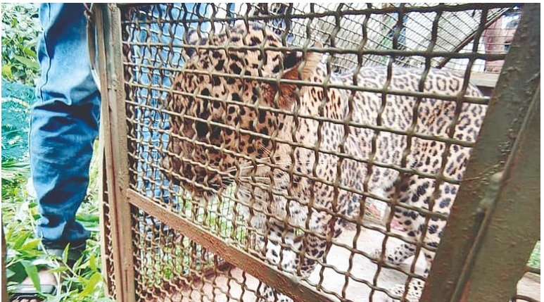 बुधवारी (ता. १७) सकाळी साडेनऊ वाजण्याच्या सुमारास एक बिबट्या धने यांच्या घरामागे येऊन बसला होता. पायाला जखम झाल्यामुळे त्याला वेगवान हालचाल करणे शक्य होत नव्हते. घराच्या परिसरात मुक्तपणे तो फिरत होता. परिसरात माणसांचा कोलाहल असला तरीही तो आक्रमक झालेला नव्हता. बिबट्या नर जातीचा असून, त्याचे वय साधारण ३ ते ४ वर्षे आहे. त्याच्या डाव्या मागील पायाच्या मांडीला जखम झाली होती. तो उपाशी असल्याचा अंदाज वनविभागाकडून वर्तवण्यात आला होता. त्या बिबट्याला पकडून संगमेश्वर येथे आणले गेले. पशुवैद्यकीय अधिकाऱ्यांच्या मार्गदर्शनाखाली त्याच्यावर दोन दिवस उपचार सुरू होते. बिबट्याला ठेवलेला पिंजराही आकाराने लहानच असल्याने उपचार करताना अडचणी आल्या. त्यावरही मात करत पशुवैद्यकीय अधिकाऱ्यांनी इंजेक्शन देणे किंवा सलाईन लावणे, असे उपचार केले; परंतु त्यातील मर्यादा लक्षात घेऊन अखेर अधिक उपचारासाठी बिबट्याला पुण्यातील रेस्क्यू केंद्रात पाठवण्याचा निर्णय वनविभागाकडून घेण्यात आला. त्यानुसार बिबट्याची रवानगी तिकडे करण्यात आली. त्याची तब्येत सुधारत असल्याचे प्रादेशिक वनाधिकारी प्रकाश सुतार यांनी सांगितले.