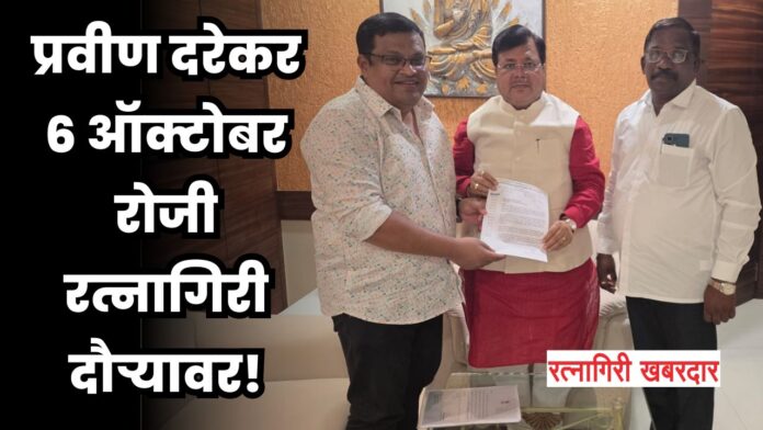 रत्नागिरी : रत्नागिरी जिल्ह्यातील सहकार चळवळीला नवसंजीवनी देण्यासाठी आणि जिल्हा सहकारी बोर्डाच्या अडचणींवर तोडगा काढण्यासाठी राज्य सहकारी संघाचे अध्यक्ष तथा विधानपरिषद गटनेते आमदार प्रवीण दरेकर लवकरच रत्नागिरी दौऱ्यावर येत आहेत. जिल्हा सहकारी बोर्डाचे अध्यक्ष हेमंत वणजु यांनी कृषिभूषण डॉ. तानाजीराव चोरगे यांच्या मार्गदर्शनानुसार नुकतीच मुंबई येथे दरेकर यांची भेट घेऊन जिल्ह्यातील सहकार क्षेत्रातील विविध समस्या त्यांच्यासमोर मांडल्या होत्या. या भेटीदरम्यान झालेल्या चर्चेनुसार, ६ ऑक्टोबर २०२५ रोजी रत्नागिरीमध्ये तीन जिल्ह्यांची (रत्नागिरी, सिंधुदुर्ग, रायगड) महत्त्वपूर्ण बैठक आयोजित करण्यात आली आहे.