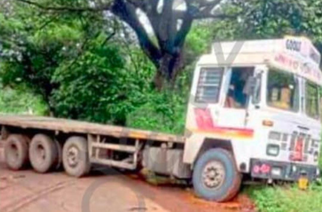 संगमेश्वर : मुंबई-गोवा राष्ट्रीय महामार्गावरील शास्त्रीपूल आंबेड येथून डिंगणी-करजुवे मार्गाकडे जाणऱ्या मुख्य रस्त्यावर बाराचाकी ट्रक वळवताना चिखलात रुतल्याने पूर्ण रस्ता बंद झाला आहे. यामुळे या मार्गावरील वाहतूक ठप्प झाली होती.