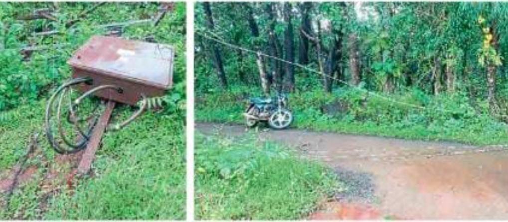 कणगवली काल दुपारी जोरदार पाऊस झाला. यामध्ये रोहित्र कोसळले. यापूर्वी धोकादायक बनलेले हे रोहित्र तात्काळ बदलण्यात यावे अशी मागणी येथील सामाजिक कार्यकर्ते विठ्ठल इंगळे यांनी केली होती. मात्र त्याकडे महावितरणने दुर्लक्ष केल्याचा आरोप ग्रामस्थांकडून केला जात आहे.