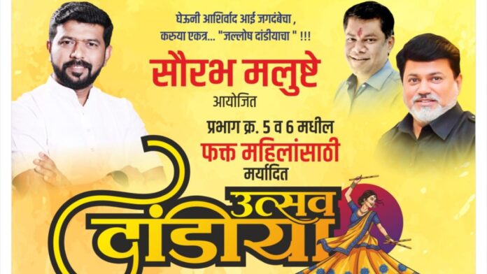 नवरात्रीच्या उत्साहाला साजरे करण्यासाठी रत्नागिरी शहरातील प्रभाग क्रमांक ५ आणि ६ मधील महिलांसाठी विशेष ‘उत्सव दांडिया’चे आयोजन करण्यात आले आहे. ना. उदय सामंत आणि आ. किरण उर्फ भैया सामंत यांच्या मार्गदर्शनाखाली आणि उद्योजक सौरभ मलुष्टे यांच्या पुढाकाराने या विशेष कार्यक्रमाचे आयोजन करण्यात आले आहे. महिलांसाठीचा हा विशेष कार्यक्रम २८ सप्टेंबर रोजी सायंकाळी ६:३० ते रात्री १० या वेळेत बाळासाहेब ठाकरे ॲक्टिव्हिटी सेंटर, साळवी स्टॉप येथे होणार आहे.