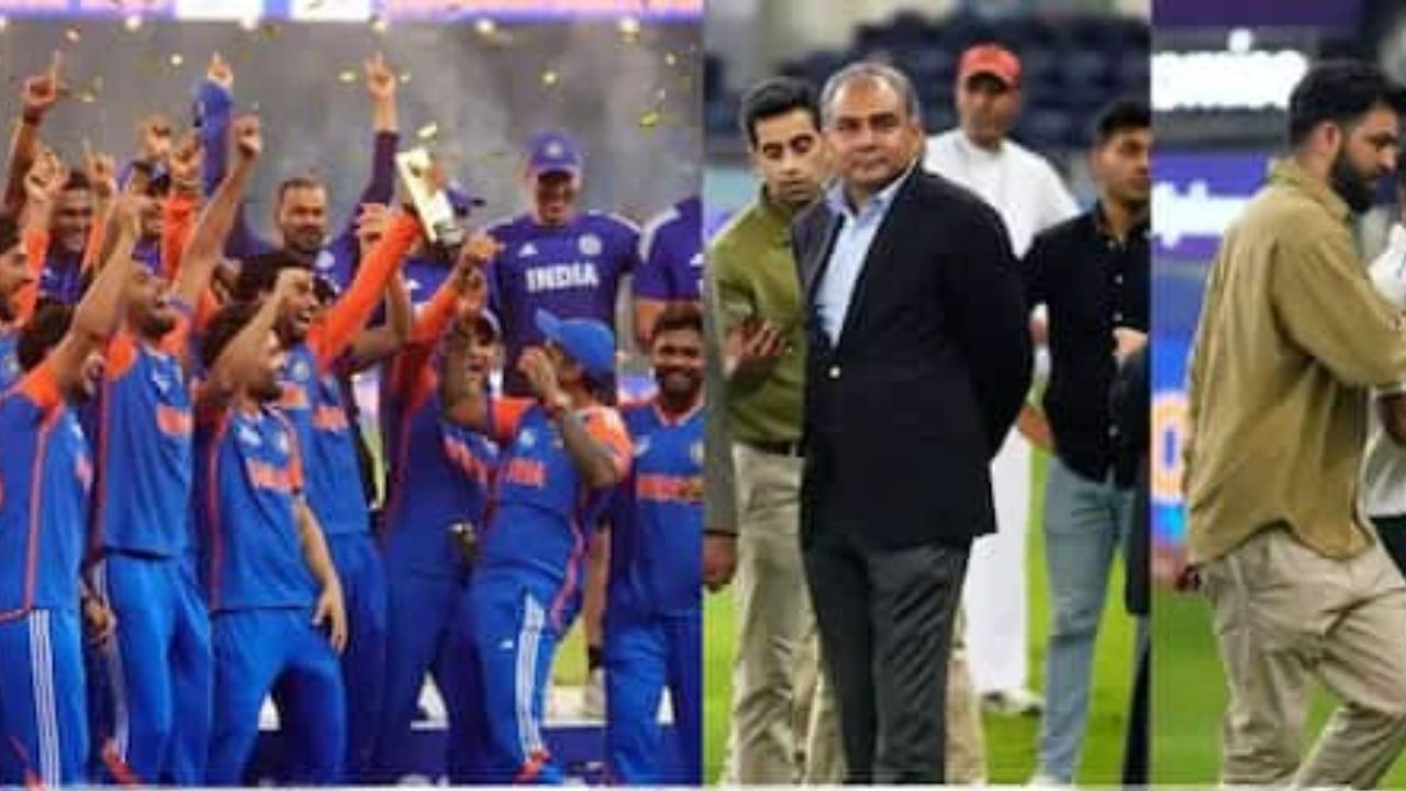 एसीसीचे अध्यक्ष मोहसीन नक्वी हे पाकिस्तानचे गृहमंत्री आणि पाकिस्तान क्रिकेट बोर्डाचे अध्यक्षही आहेत. त्यामुळंच भारतीय संघानं मोहसीन नक्वी यांच्या हस्ते आशिया चषक आणि वैयक्तिक पदकं स्वीकारण्यास स्पष्ट नकार दिला. भारतीय संघाच्या या जिद्दानंतरही मोहसीन नक्वी देखील ट्रॉफी देण्यासाठी हट्ट करत होते. त्यानंतर ट्रॉफी न घेण्याचा निर्णय भारतीय संघाने घेतला. शेवटपर्यंत भारतीय संघाने ट्रॉफी घेतली नाही. अखेर ट्रॉफी न घेताच भारतीय संघाने सेलिब्रेशन केले. त्यानंतर मोहसीन नक्वी ट्रॉफी घेऊन निघून गेले. पहलगाममध्ये पाकिस्तानी दहशतवाद्यांनी भारतीय पर्यटकांवर केलेल्या हल्ल्याच्या पार्श्वभूमीवर भारतीय खेळाडूंनी तिन्ही सामन्यांमध्ये पाकिस्तानी खेळाडूंशी हस्तांदोलन करणं कटाक्षानं टाळलेलं. तसंच फायनलच्या नाणेफेकीआधी फोटो शूटला जाणंही टाळलेलं. आशिया चषक आणि वैयक्तिक पदकं स्वीकारण्यास नकार दिला.
