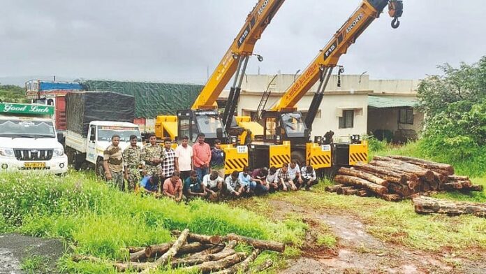 लांजा : लांजा तालुक्यातील वन विभागाच्या कुर्णे येथील राखीव वनक्षेत्रातून सागाच्या झाडांच्या चोरी प्रकरणी वनविभागाने 11 जणांसह क्रेन, एक ट्रक, दोन बोलेरो पिकअप अशी पाच वाहने असा जवळपास कोट्यवधी रुपयांचा मुद्देमाल जप्त केला आहे.