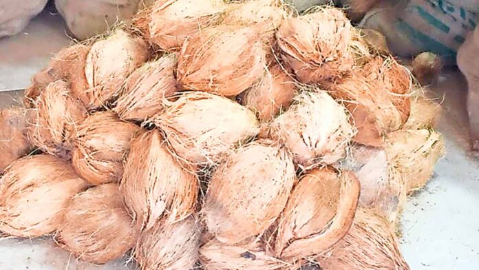 खेड : कोकणात सध्या नारळाच्या दराने मोठी उसळी घेतली आहे. ऐन नवरात्रोत्सवात भाविकांच्या खिशाला चटका बसला आहे. एक वर्षापूर्वी १३ रुपयांना मिळणारा नारळ आता तब्बल ३३ रुपयांपर्यंत पोहोचला आहे. काही ठिकाणी हा दर ४५ रुपयांपर्यंत गेला असून, अचानक झालेल्या या दरवाढीचं गूढ अधिकच गडद झाले आहे. वाशी मार्केटमध्ये घाऊक दर वाढल्याने किरकोळ विक्रेत्यांना दर वाढवावा लागल्याचे सांगण्यात येत आहे. सणासुदीच्या काळात नारळ हा महत्त्वाचा पूजासाहित्याचा घटक असल्याने, भाविकांना त्यासाठी जादा पैसे मोजावे लागत आहेत.