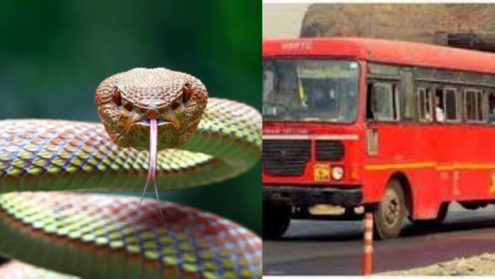 देवरुख : संगमेश्वर-बडदवाडी एसटी बसमध्ये साप आढळल्याने प्रवाशांमध्ये मोठा गोंधळ झाला. बस सुरु होताच चालकाच्या शेजारी बसलेल्या मुलीला हा साप (Snake) दिसताच ती ओरडायला लागली. चालक, वाहक आणि धाडसी प्रवाशांनी त्या सापाला एसटी बसमधून बाहेर काढले.