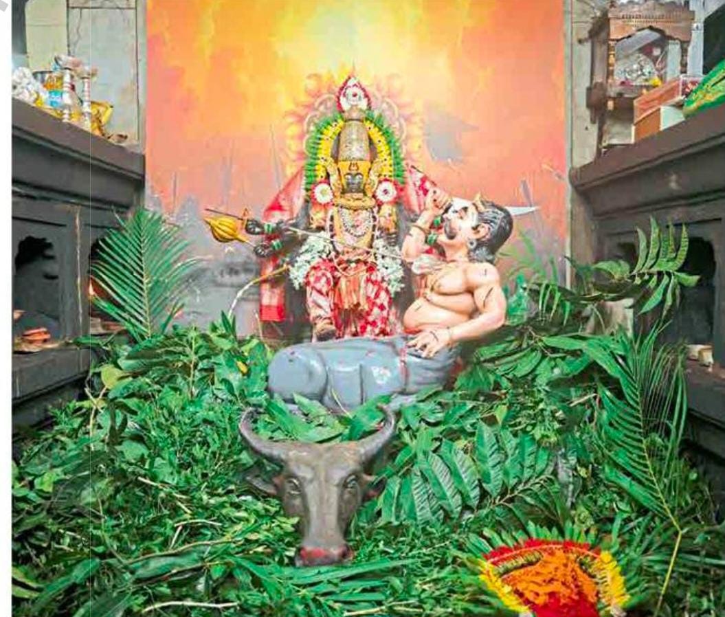 कोल्हापूर : नवरात्रौत्सवाच्या नवव्यादिवशी मंगळवारी आश्विन शुक्ल अष्टमीदिवशी करवीरनिवासिनी श्री अंबाबाई देवीची महिषासुरमर्दिनी रूपात पूजा बांधण्यात आली.