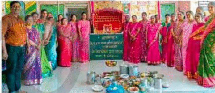 पावस : रत्नागिरी तालुक्यातील पूर्णगड शाळेत सरस्वती पूजन करण्यात आले. यानिमित्ताने आकर्षक देखावाही करण्यात आला होता. आरती, मुलांचे विविध कलागुणांना वाव देणारे गायनाचे कार्यक्रम, भोंडला, टिपरी नृत्य आदी कार्यक्रम झाले.