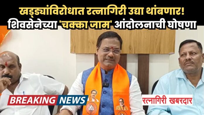 रत्नागिरी, दि. ३ ऑक्टोबर : शहरासह संपूर्ण जिल्ह्यातील रस्त्यांची अक्षरशः चाळण झाली असून, या खड्डेमय रस्त्यांमुळे नागरिक आणि वाहनचालक त्रस्त झाले आहेत. याच मुद्द्यावरून शिवसेना (उद्धव बाळासाहेब ठाकरे) पक्षाचे उपनेते आणि माजी आमदार बाळ माने यांनी आज पत्रकार परिषद घेत प्रशासनावर आणि थेट पालकमंत्री उदय सामंत यांच्यावर जोरदार हल्लाबोल केला. या दयनीय परिस्थितीचा निषेध करण्यासाठी उद्या, दिनांक ४ ऑक्टोबर रोजी दुपारी १२ वाजता रत्नागिरीत ‘चक्का जाम’ आंदोलन करण्याचा इशारा त्यांनी दिला आहे.