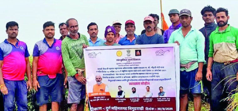 लोटे : छत्रपती शिवाजी महाराजस्व स्वाभिमान अभियान अंतर्गत पंतप्रधान नरेंद्र मोदी यांच्या वाढदिवसानिमित्त सेवा पंधरवडा राबवण्यात येत आहे. यानिमित्त सहाय्यक संचालक (पुरातत्व), विभागीय कार्यालय रत्नागिरी व अभिरक्षक, प्रादेशिक वास्तुसंग्रहालय रत्नागिरी यांच्या मार्गदर्शनाखाली निगुडवाडी ग्रामस्थ तसेच दुर्ग महिमतगड प्रतिष्ठान यांनी एकत्र येऊन मंगळवारी महिमतगड किल्ल्यावर स्वच्छता मोहीम राबवली. या मोहिमेत स्थानिक ग्रामस्थ व दुर्ग प्रतिष्ठानच्या कार्यकर्त्यांनी भाग घेतला.