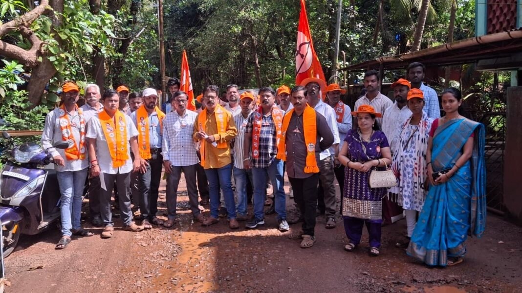 शिंदे शिवसेनेच्या कार्यकर्त्यांनी शिरगाव येथे उपतालुकाप्रमुख भैय्या शिंदे यांच्या नेतृत्वाखाली एकत्र येत रस्त्यावर पडलेल्या खड्ड्यांविरोधात सोमवारी संताप व्यक्त केला. रस्त्याच्या निकृष्ट कामामुळे नागरिकांना मोठा त्रास सहन करावा लागत असल्याचा आरोप करत प्रशासनाविरोधात घोषणाबाजी केली.