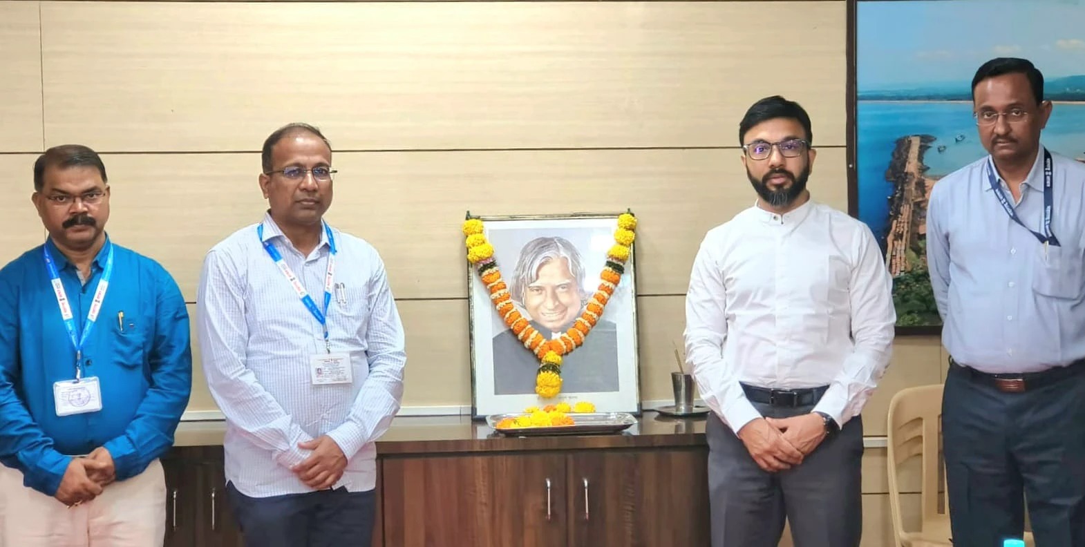 रत्नागिरी : येथील जिल्हाधिकारी कार्यालयातील सभागृहात माजी राष्ट्रपती एपीजे अब्दुल कलाम यांना त्यांच्या जयंतीनिमित्त त्यांच्या प्रतिमेस जिल्हाधिकारी मनुज जिंदल यांनी पुष्पहार अर्पण करून अभिवादन केले.
