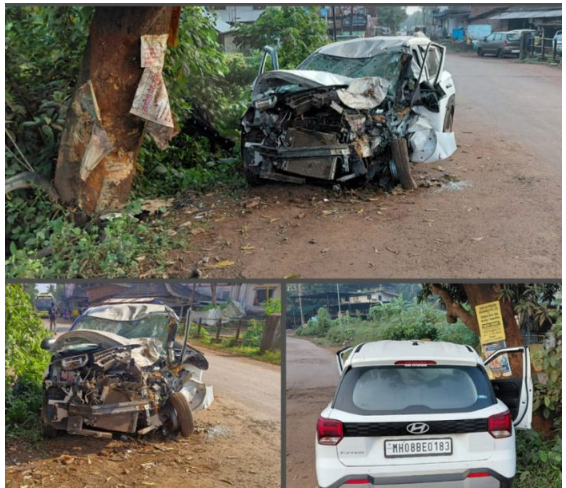 दापोली : दापोली-मंडणगड महामार्गावर खोंडा परिसरात गुरुवारी (१६ ऑक्टोबर) रात्री सुमारे ९ ते ९:१५ वाजण्याच्या दरम्यान एक भीषण अपघात घडला. जाहिद कॉम्प्लेक्ससमोर असलेल्या पुलाजवळ दापोलीकडून मंडणगडच्या दिशेने वेगाने येणारी कार अचानक नियंत्रण सुटल्याने रस्त्याच्या कडेला असलेल्या मोठ्या आंब्याच्या झाडाला जोरदार धडकली. या अपघाताची तीव्रता इतकी होती की कारचा समोरील भाग पूर्णपणे चक्काचूर झाला. तर अपघातानंतर कार पुन्हा वळून दापोलीच्या दिशेने तोंड करून उभी राहिली असल्याचे पहावयास मिळाले. अपघाताच्या आवाजाने परिसरातील नागरिक घटनास्थळी धावले आणि चालकाला बाहेर काढून तातडीने वैद्यकीय उपचारासाठी दापोली उपजिल्हा रुग्णालय इथे हलवले.