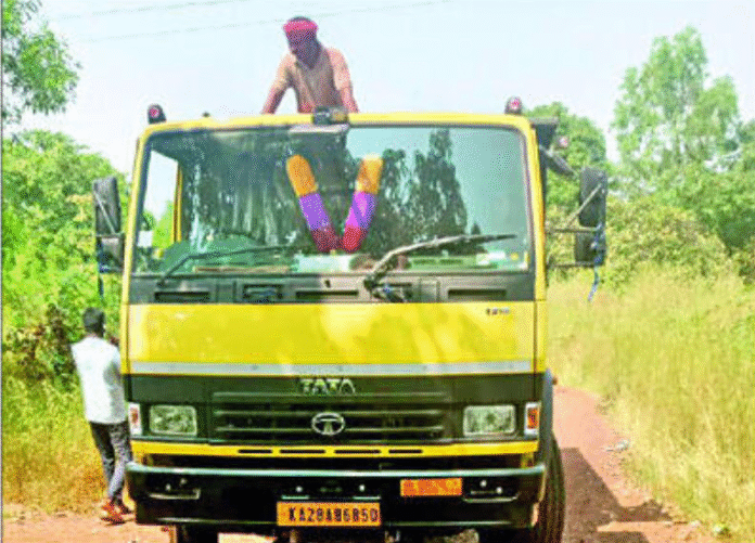 दापोली : तालुक्यातील देहेण येथे कर्नाटक पासिंगचा वाळूने भरलेला एक डम्पर येथील ग्रामस्थांनी अडवून दापोली महसूल विभागाच्या ताब्यात दिला आहे. या कारवाईत महसूल विभागाने पंचनामा करून हा वाळूने भरलेला डम्पर वाळूसह दापोली पोलिस ठाण्याच्या आवारात आणून ठेवण्यात येणार आहे, असे सांगितले.