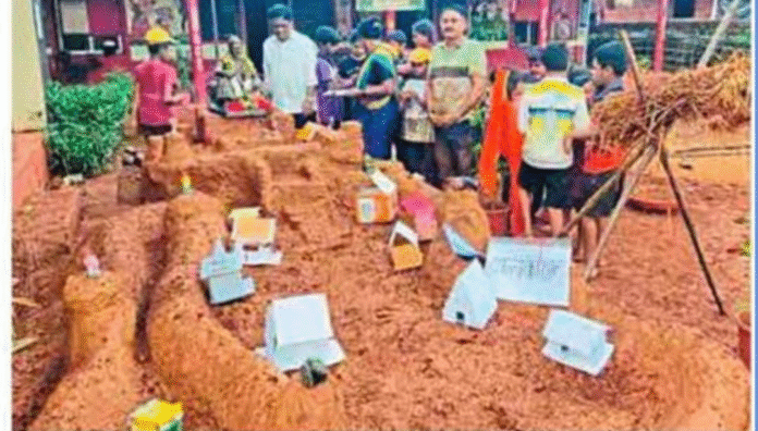 साखरपा : देवधामापूर (ता. संगमेश्वर) येथील सप्रेवाडी शाळेत विद्यार्थ्यांनी किल्ले प्रतापगडची प्रतिकृती साकारली आहे. १५ बाय ६ फूट आकाराची ही प्रतिकृती पंचक्रोशीत आकर्षणाचा विषय ठरत आहे. शासनातर्फे दुर्गोत्सव २०२५ ही संकल्पना जाहीर करण्यात आली आहे. दिवाळी आणि किल्ले यांचे नाते बऱ्याच वर्षांपूर्वीपासून अतूट आहे. याचा एक भाग म्हणून दुर्गोत्सव संकल्पना राबवण्यात येत आहे. यूनेस्कोतर्फे जाहीर झालेल्या १२ किल्ल्यांपैकी कोणत्याही एका किल्ल्याची प्रतिकृती साकारून त्याचे फोटो शासनाच्या संकेतस्थळावर अपलोड करायचे आहेत.