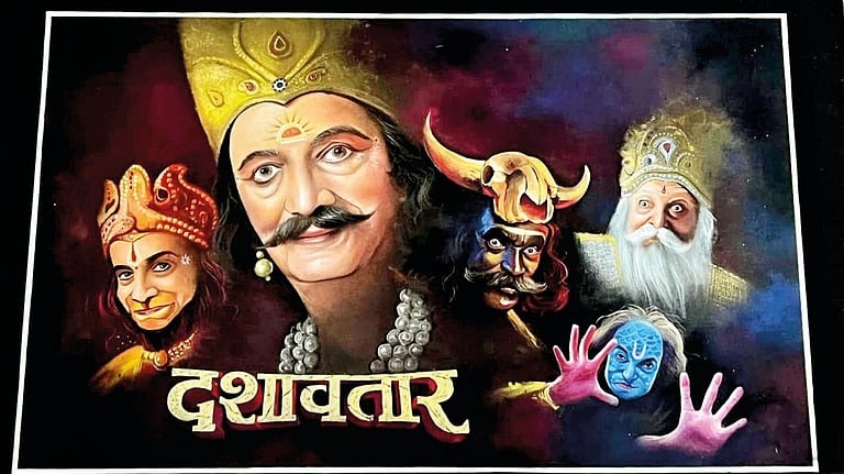 देवरूख : दिवाळीनिमित्त देवरुखची ग्रामदेवता श्री देवी सोळजाई मंदिरात रेखाटण्यात आलेली भव्यदिव्य अशी दशावतार रांगोळी लक्षवेधी ठरली आहे. हनुमान प्रासादिक बालमित्र समाज खालची आळी येथील रांगोळी कलाकारांनी हा वारसा बरीच वर्षे जपला आहे. सध्या महाष्ट्रात गाजत असलेला दशावतार चित्रपटातील कलाकारांनी साकारलेल्या भूमिका रांगोळीच्या माध्यमातून या मंदिरात रेखाटल्या आहेत.