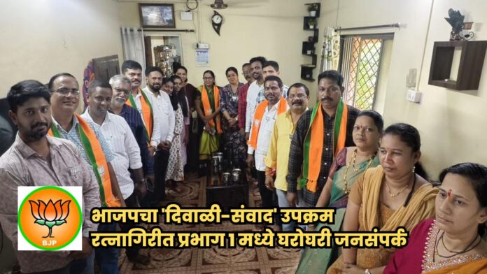 रत्नागिरी : आगामी रत्नागिरी नगर परिषद सार्वत्रिक निवडणुकांच्या पार्श्वभूमीवर, भारतीय जनता पक्ष (भाजप) महायुतीने प्रभाग क्रमांक १ मध्ये ‘दिवाळी शुभेच्छा अभियान’ आणि ‘नागरिक संवाद’ हा दुहेरी उपक्रम राबवला. भाजप प्रदेशाध्यक्ष मा. रवींद्र चव्हाण साहेब आणि जिल्हाध्यक्ष राजेश सावंत यांच्या प्रमुख मार्गदर्शनाखाली हा कार्यक्रम पार पडला. या माध्यमातून नागरिकांशी थेट संपर्क साधत दिवाळीच्या शुभेच्छा देण्यासोबतच पक्षाची भूमिका आणि निवडणुकीची तयारी यावर भर देण्यात आला.