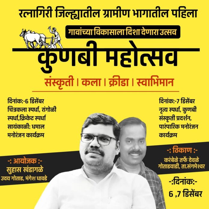 रत्नागिरी : ग्रामीण संस्कृतीला एका नवी ओळख आणि विकासाची नवी दिशा देण्यासाठी कुणबी महोत्सव आयोजित करण्यात आला आहे. येत्या ६ आणि ७ डिसेंबर रोजी कांबळे तर्फे देवळे (ता.संगमेश्वर) येथील गोताडवाडीत हा महोत्सव होणार आहे.