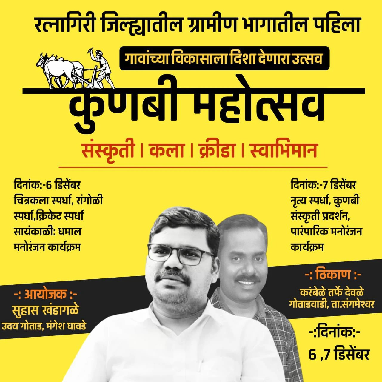 संस्कृती, कला, क्रीडा आणि स्वाभिमान या चार स्तरांवर आधारित हा महोत्सव ग्रामीण जीवनातील चैतन्य पुन्हा करणारा ठरेल, असा विश्वास आयोजक सुहास खंडागळे, उदय गोताड यांनी व्यक्त केला आहे.