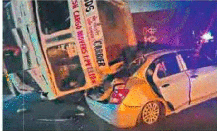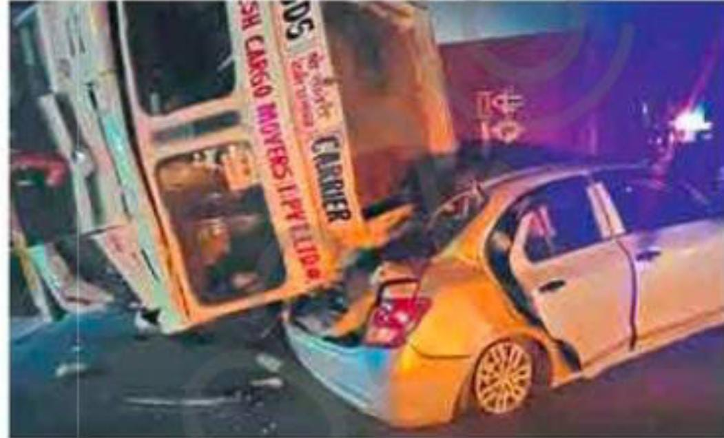 निघालेल्या मोटारीवर उलटला. यामध्ये मोटारीचा पूर्णपणे चेंदामेंदा झाला. सुदैवाने या मोटारीमधून प्रवास करणारे दोघेजण बचावले असले, तरी त्यांना दुखापत झाल्याची माहिती समोर येत आहे.