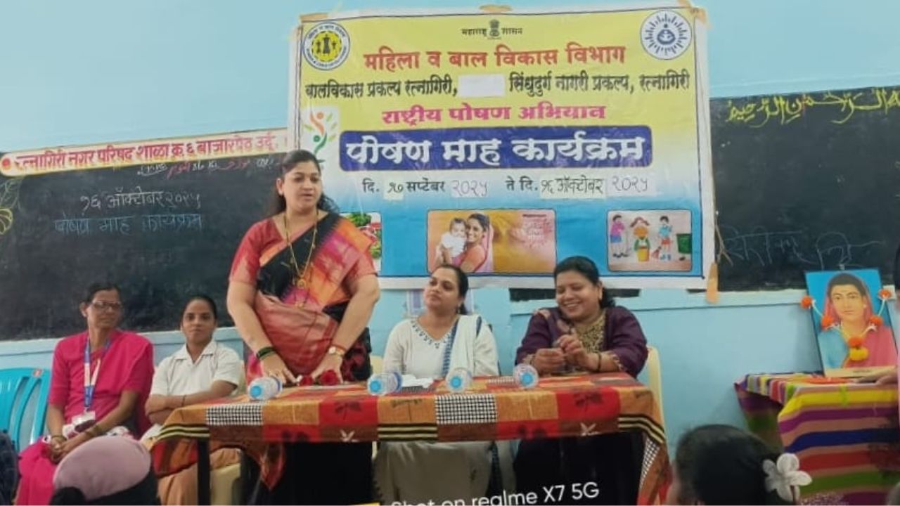 रत्नागिरी : महिला बाल विकास विभाग, बालविकास प्रकल्प रत्नागिरी यांच्या संयुक्त विद्यमाने ‘राष्ट्रीय पोषक अभियाना’अंतर्गत ‘पोषक माह’ कार्यक्रमाचे आयोजन करण्यात आले होते. रत्नागिरीतील शाळा क्र. ६ येथे पार पडलेला हा कार्यक्रम मोठ्या उत्साहात संपन्न झाला. यावेळी शिवसेना महिला शहर संघटक व माजी नगरसेविका वैभवी खेडेकर यांनी उपस्थित पालक, अंगणवाडी सेविका आणि मुलांना निरोगी आयुष्यासाठी संतुलित आहाराचे महत्त्व पटवून दिले.