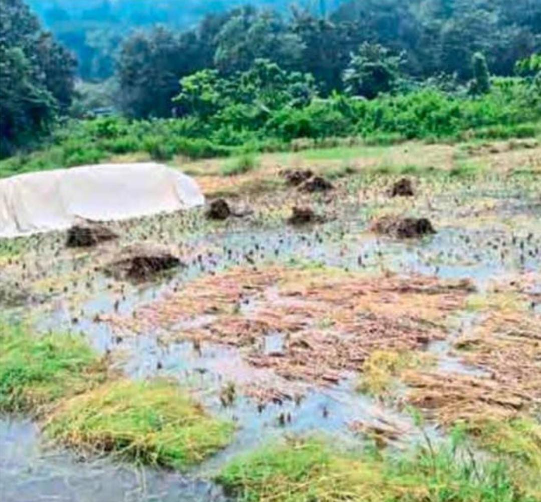 संगमेश्वर : तालुक्यातील जवळपास सर्वच शेतकऱ्यांची अवस्था बिकट झाली आहे. जीवापाड जपलेली भातशेती पावसाने वाहून गेली आहे. केवळ भात शेतीवर अवलंबून असणाऱ्यांना सर्वस्व वाहून गेल्याचे दुःख आहे. अशीच व्यथा संगमेश्वर तालुक्यातील फुणगूस गावातील शेतकऱ्यांनी मांडली आहे.
