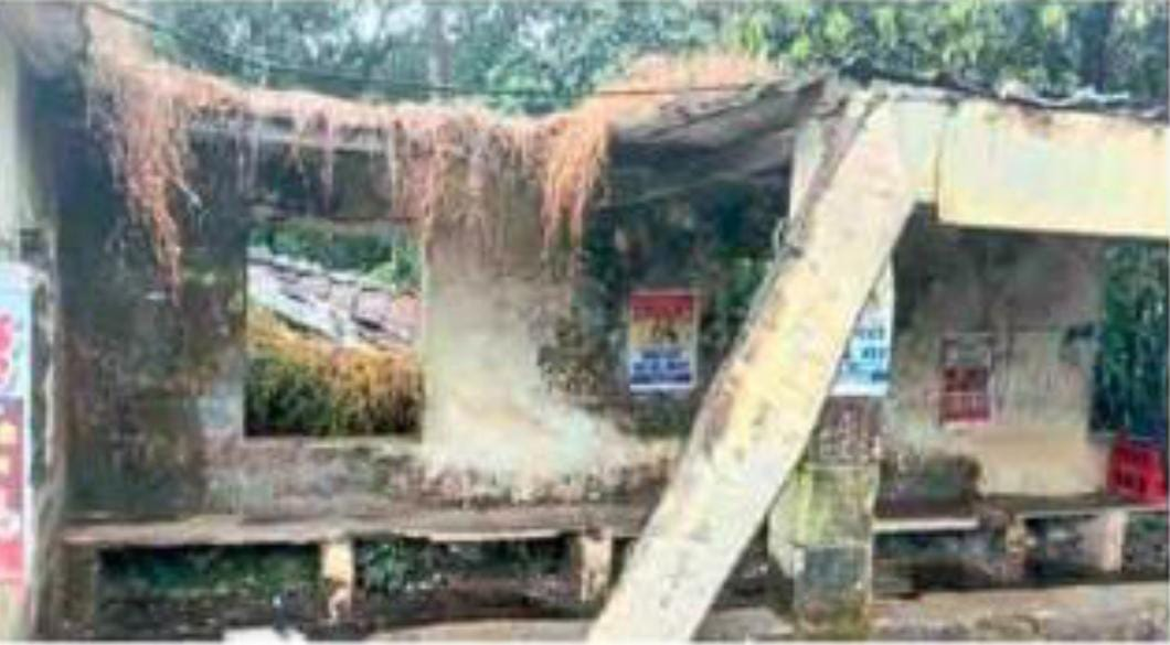 साखरपा : रत्नागिरी कोल्हापूर महामार्गावरील दाभोळे (ता. संगमेश्वर) येथील एसटी निवारा शेडच्या छताचे पत्रे पडून दोन प्रवासी किरकोळ जखमी झाले. गेली अनेक वर्षे ह्या शेडची दुरवस्था झाली आहे.