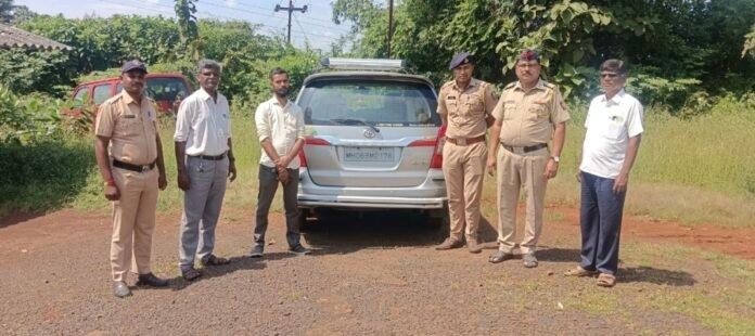 सकाळी सव्वा नऊच्या दरम्यान सिल्वर रंगाची टोयोटो कंपनीची इनोव्हा गाडी क्र. एम. एच. ०६, बी. एम. २१७६ पाचल कडून अणूस्कुराकडे चालली होती. सदर गाडी अणुस्कुरा घाटात वर्दीवर असलेल्या भरारी पथकाने थांबविली आणि तिची तपासणी केली असता, त्या गाडीच्या पाठीमागील डिकीमध्ये एका पुठ्ठयाच्या बॉक्स मध्ये गोवा बनावटीच्या विदेशी दारूच्या तीन बाटल्या व दोन बिअरच्या बाटल्या असा मुद्देमाल पथकाने हस्तगत केला सुमारे २७ हजार ६४० किमतीचा तो मुद्देमाल आणि दहा लाख रुपये किमतीची टोयोटो कंपनीची इनोव्हा गाडी पथकाने जप्त केला आहे. या प्रकरणी इनोव्हा चालक आरिफ सलीम शेख, वय ४० याच्यावर गुन्हा दाखल करण्यात आला आहे.